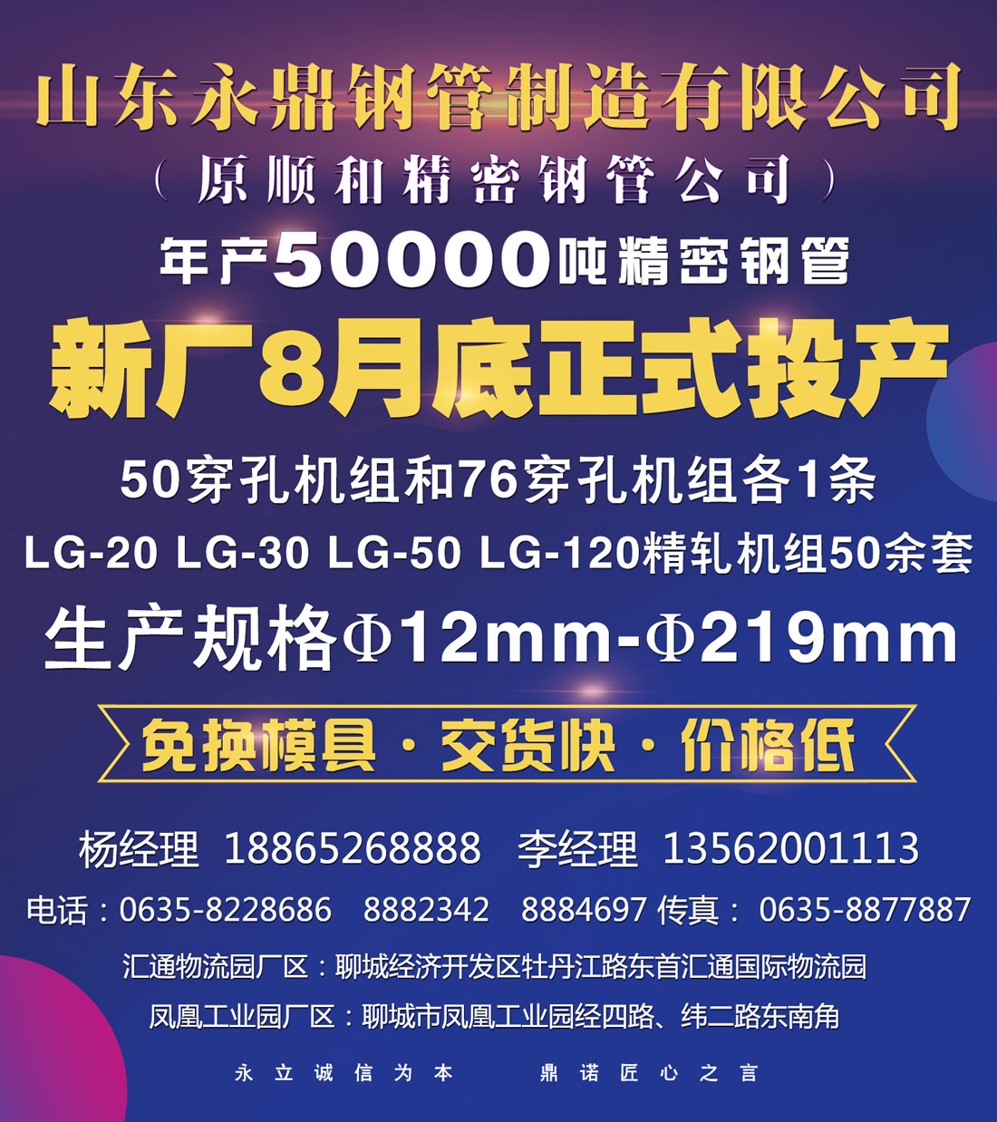 山東昌衡信德年產(chǎn)50000噸精密無(wú)縫鋼管8月底正式投產(chǎn)